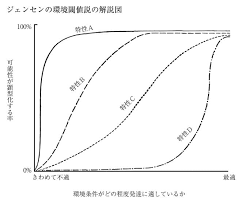 一方で、これに対して ジェンセンは、 相互作用説の一つである 環境閾値(いきち)説を提唱しました。 遺伝によって与えられた 才能を伸ばすために必要な 環境の適切さの最低限度を 閾値(いきち)と言います。